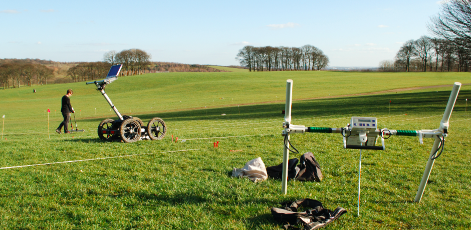 Three of the most commonly used methods in Archaeological Geophysics are Ground Penetrating Radar (GPR), Electromagnetic Conductivity (EM), and Magnetometry (Mag).